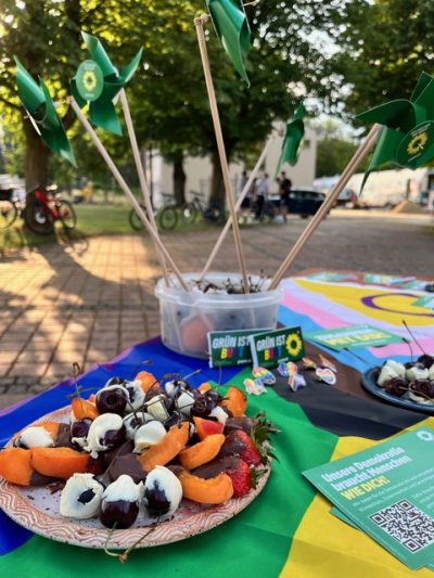 Jungbürger*innen-Versammlung im Sport- und Bürgerzentrum mit einem lustigen Stand für die Kinder und Jugendlichen. Robert, Birgit und Ruth haben die Grünen vertreten.